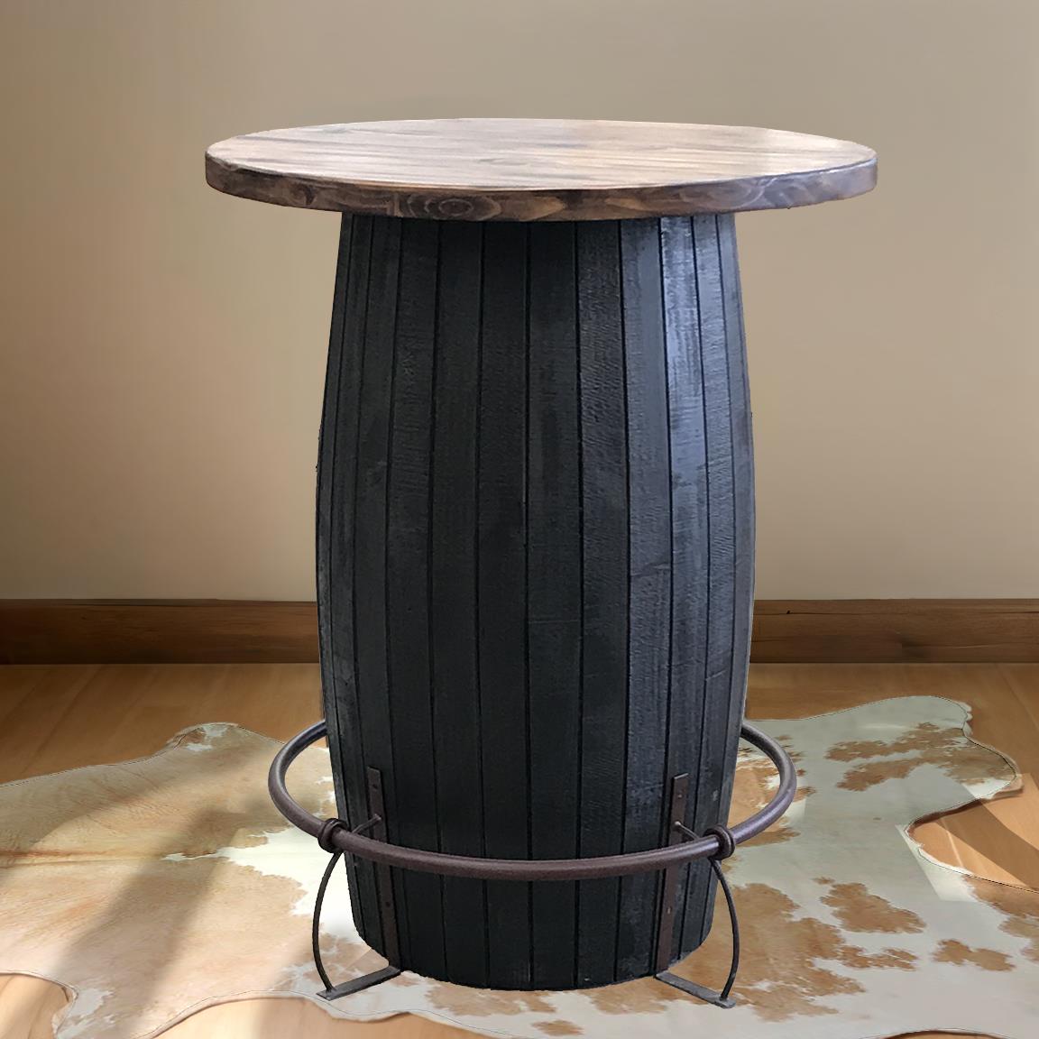"Redwood Bar Table" - Quadriform base bar table featuring verdigris copper top and aged, reclaimed wood base