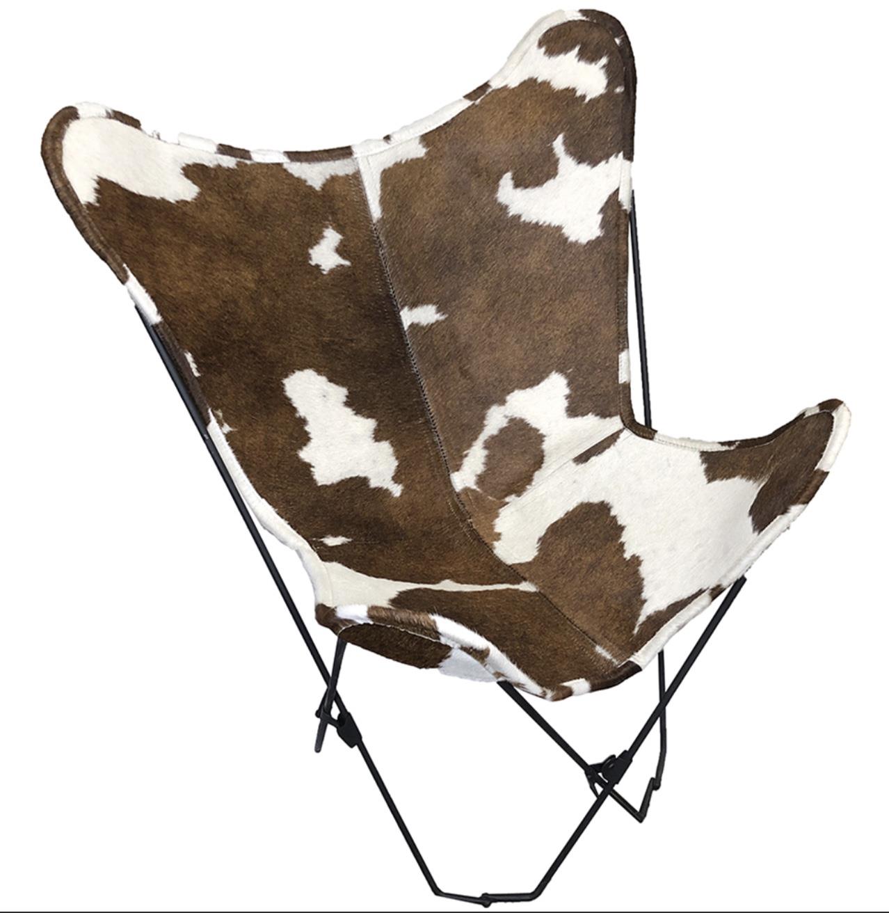 BUTTERFLY CHAIR - BROWN AND WHITE - WIDTH: 34" HEIGHT: 34" DEPTH: 32"