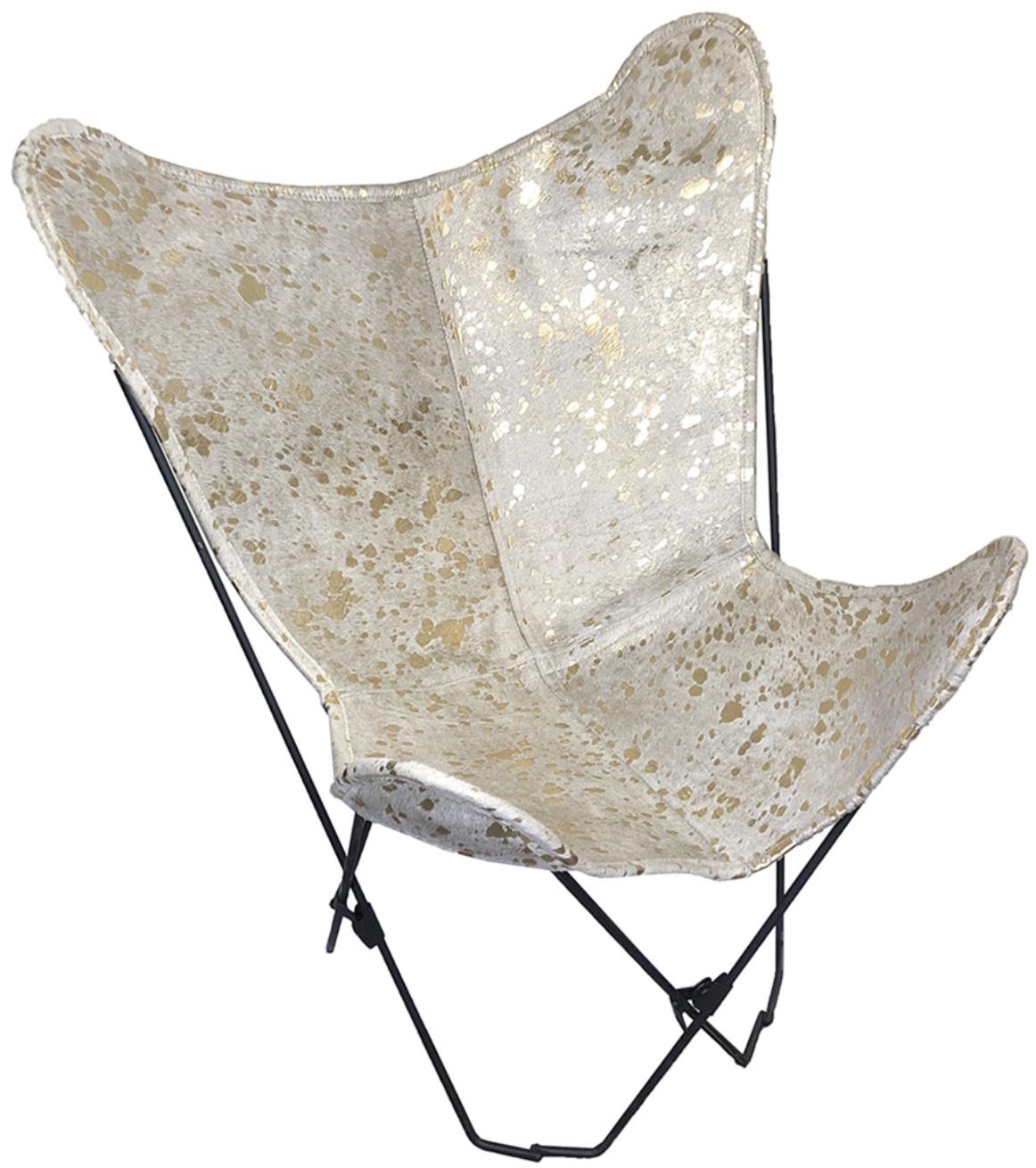 BUTTERFLY CHAIR - GOLD ON WHITE - WIDTH: 34" HEIGHT: 34" DEPTH: 32"