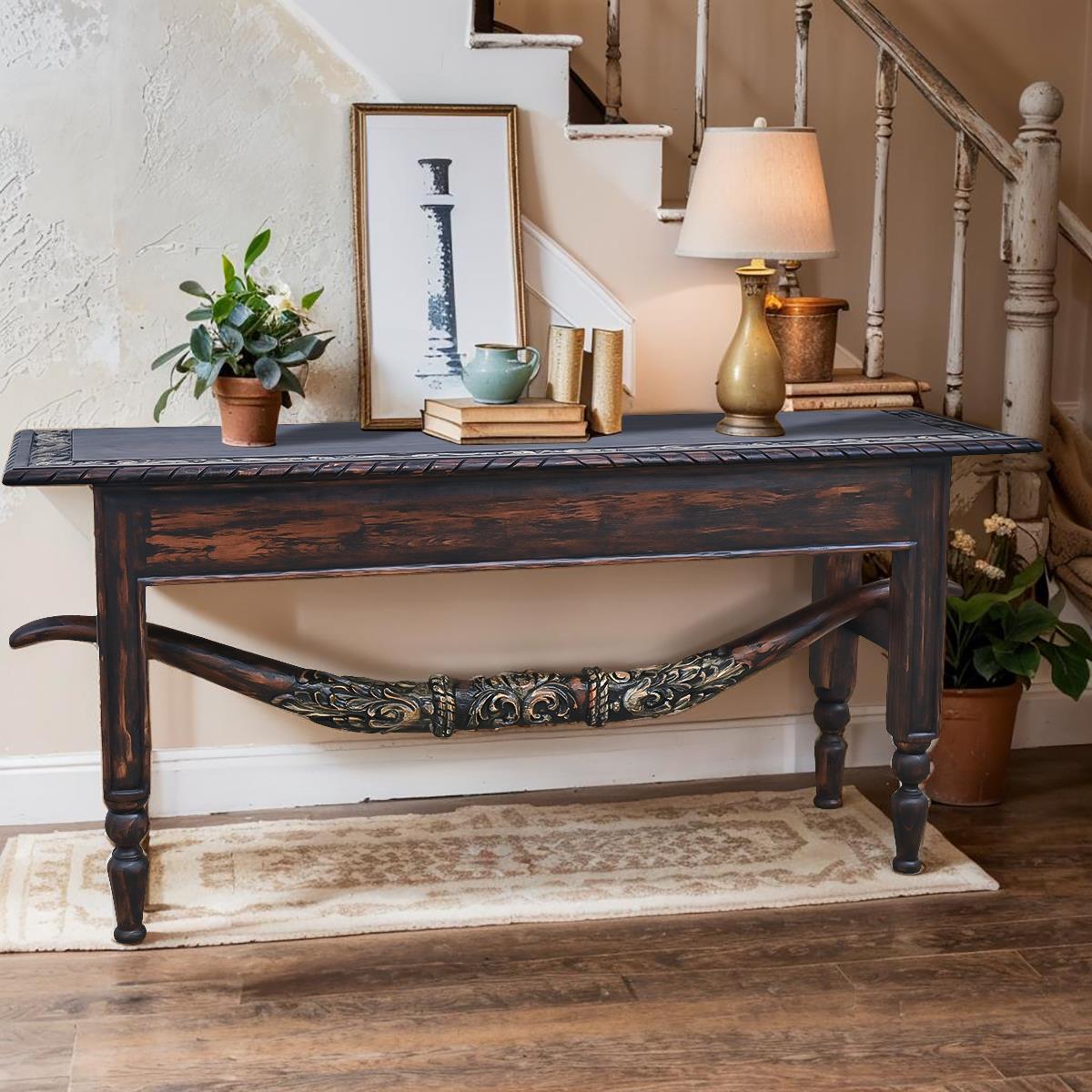LONGHORN CARVED CONSOLE WITH TURQ WASH