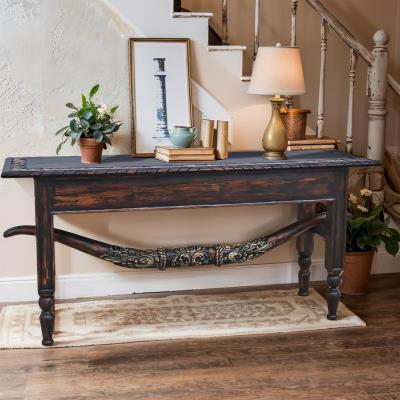 BLACK WASH LONGHORN OLD DOOR CONSOLE