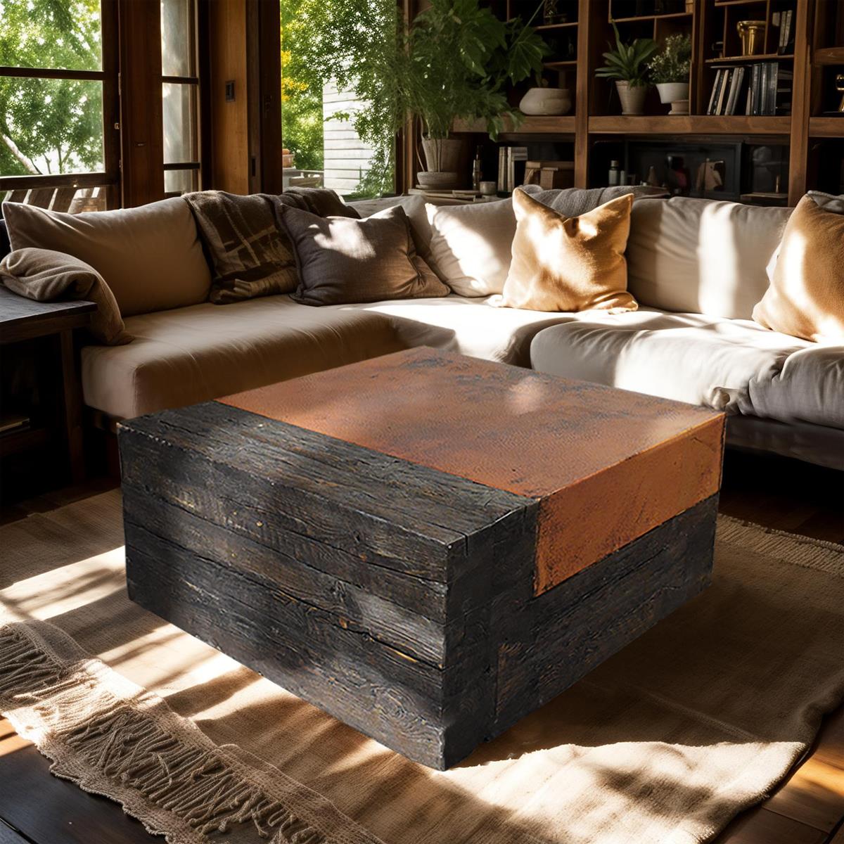 COPPER AND WOOD SQUARE COFFEE TABLE