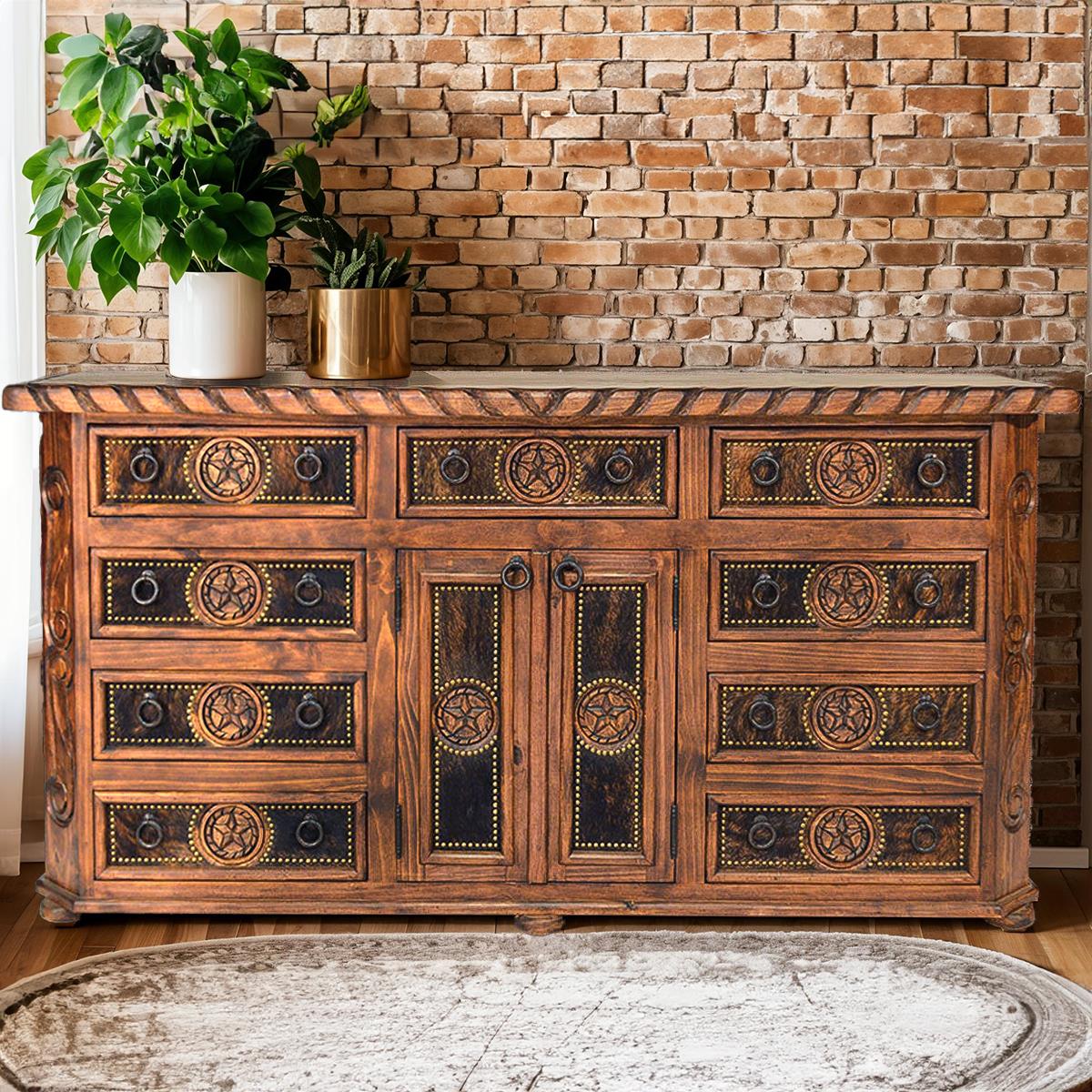6 Drawer TV Dresser W/Cowhide & Star