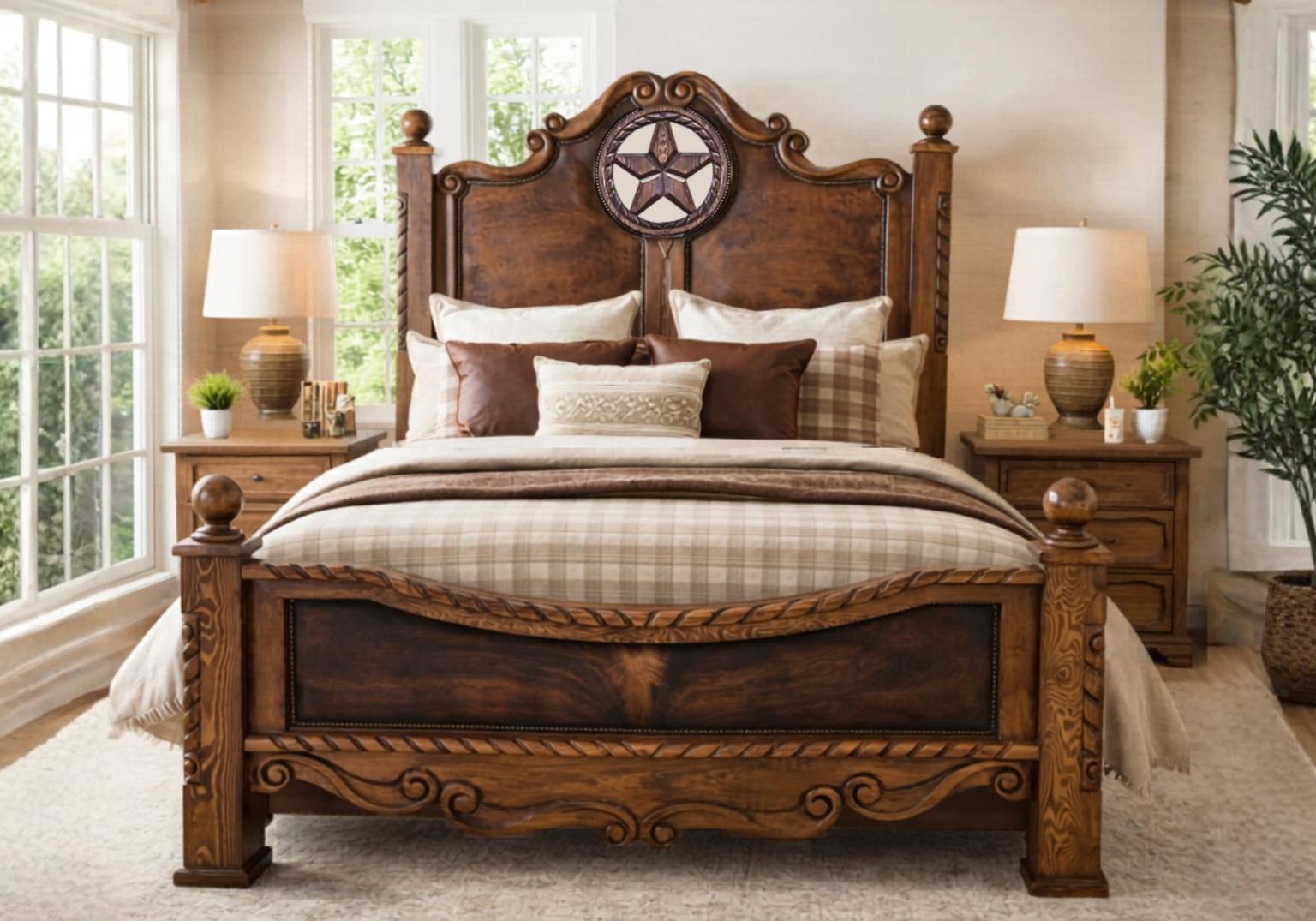 Queen Rope,Star & Cowhide Bed