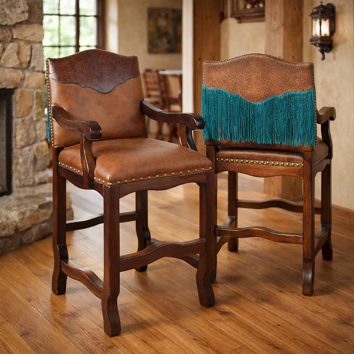 TURQUOISE NO FRINGE BACK BARSTOOL