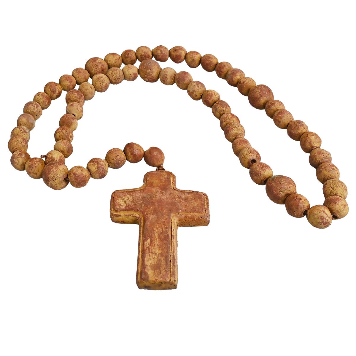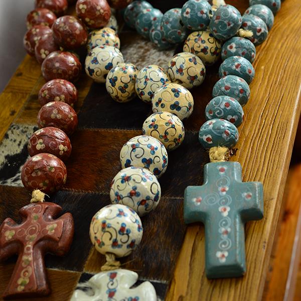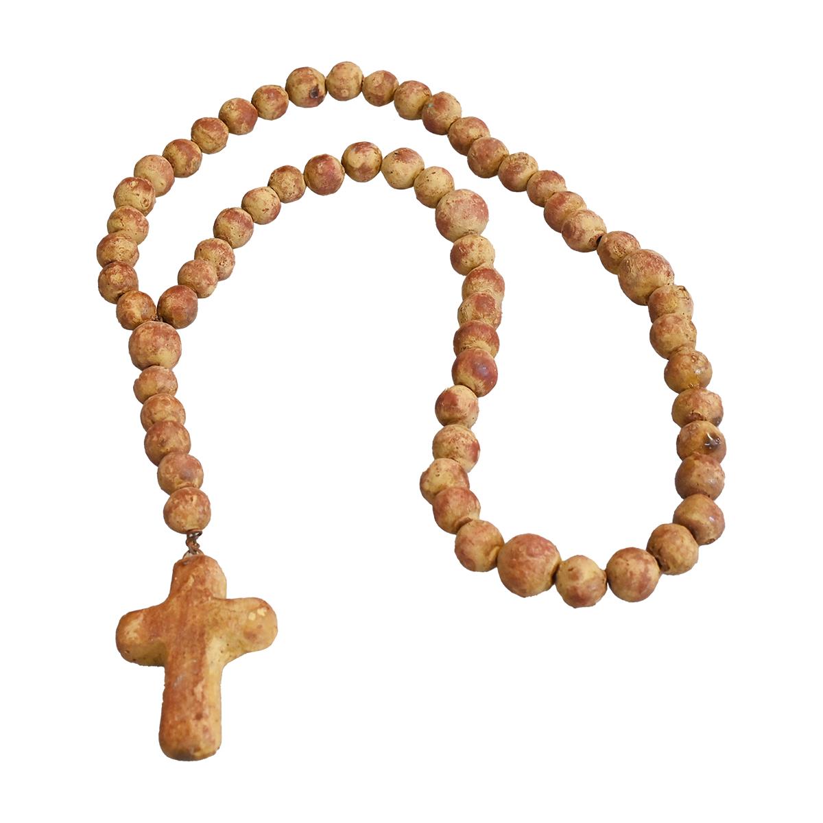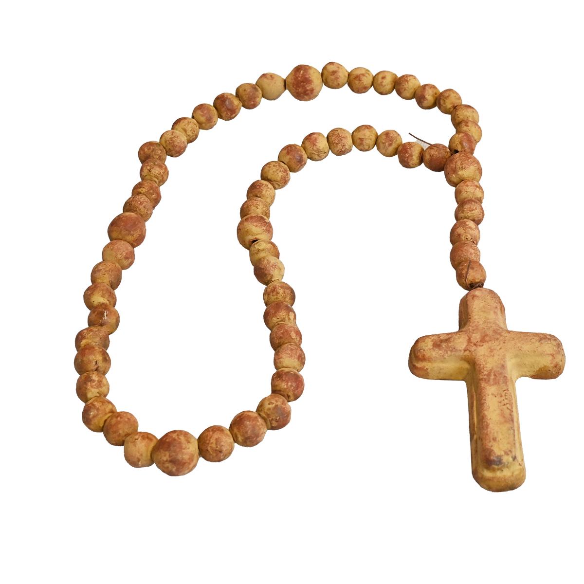HAND PAINTED LOW FIRED CLAY DECORATIVE ROSARY 25"