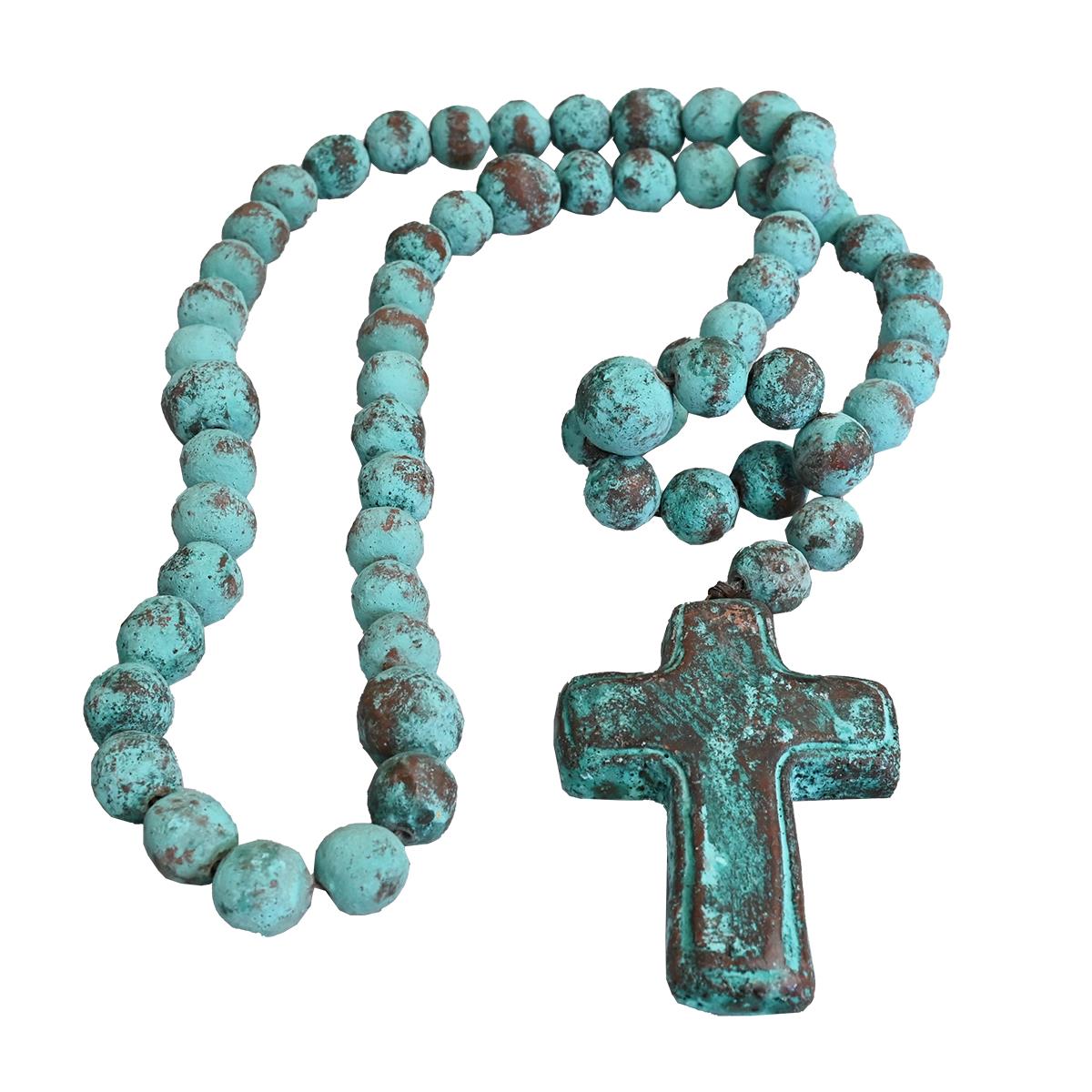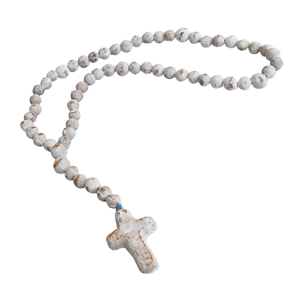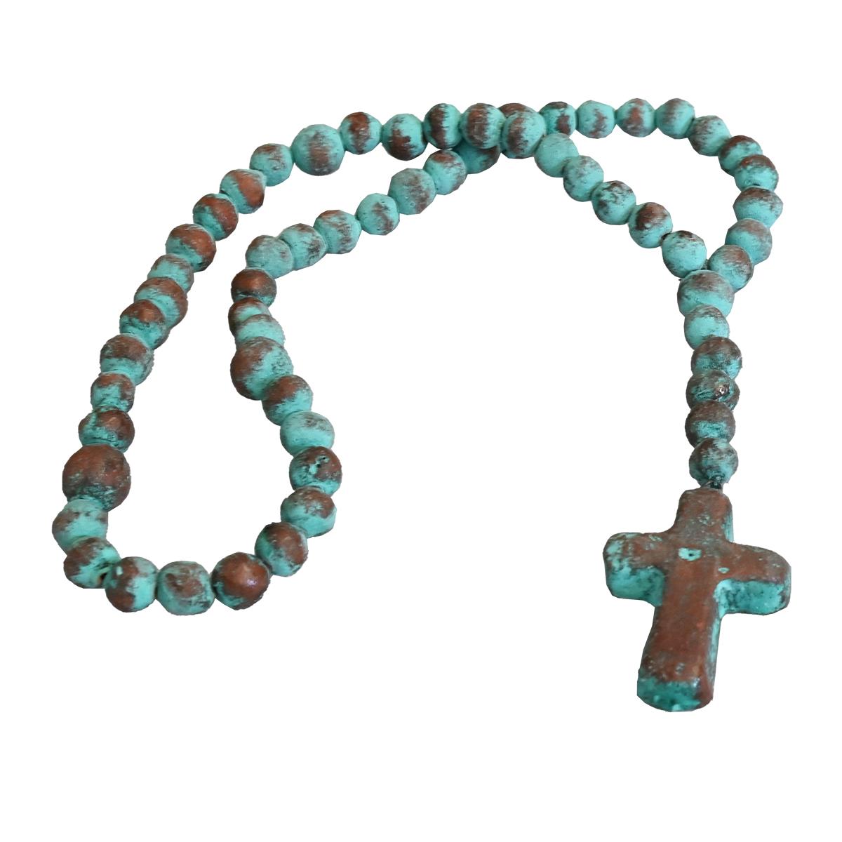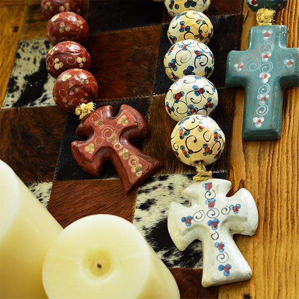 HAND PAINTED LOW FIRED CLAY DECORATIVE ROSARY 25"