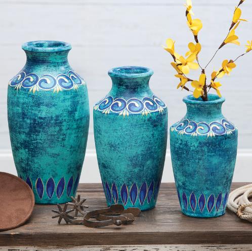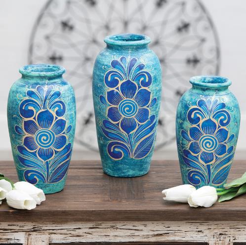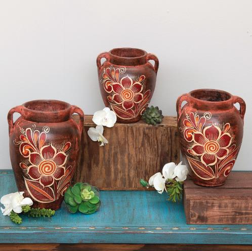 MISSION FLOWER CLAY VASES - SET OF 3 SMALL: 6" x 7" MED: 6.5" x 9.5" LG: 7" x 12"