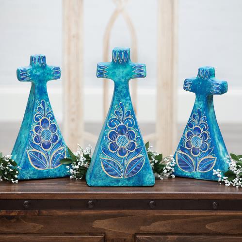 FLORES AZULES CLAY CROSSES SMALL: 6" x 15" MED: 6" x 15.5" LG: 7" x 18.5"
