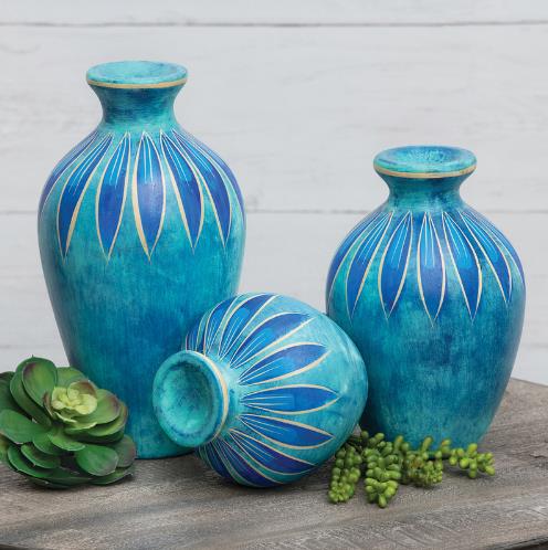MESA FLORAL CLAY VASES - SET OF 3 SMALL: 9.5" x 10" MED: 10" x 12" LG: 11" x 13.5"