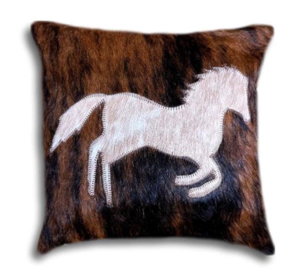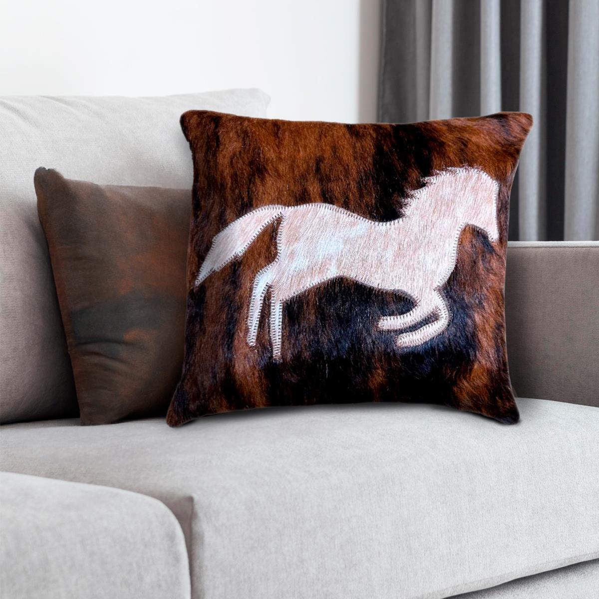 CUSHION COVER MADE OF HOH WITH RUNNING HORSE, BACK SIDE SUEDE FABRIC - 16" x 16"