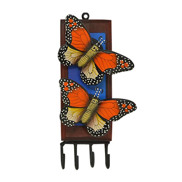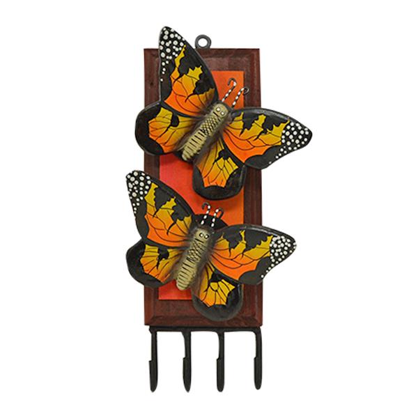TWIN BUTTERFLY KEY HANGER - FEATURES DURABLE CERAMIC BUTTERFLYS, SOLID WOOD BACKING AND STEEL...
