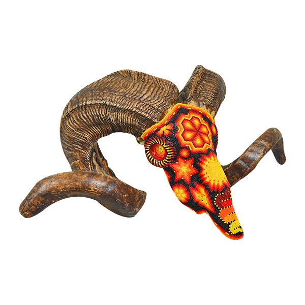 HUICHOL SKULL - SYNTHETIC SKULL WITH TRADITIONAL HUICHOL HAND BEADING - MULTI 22" x 12" x...