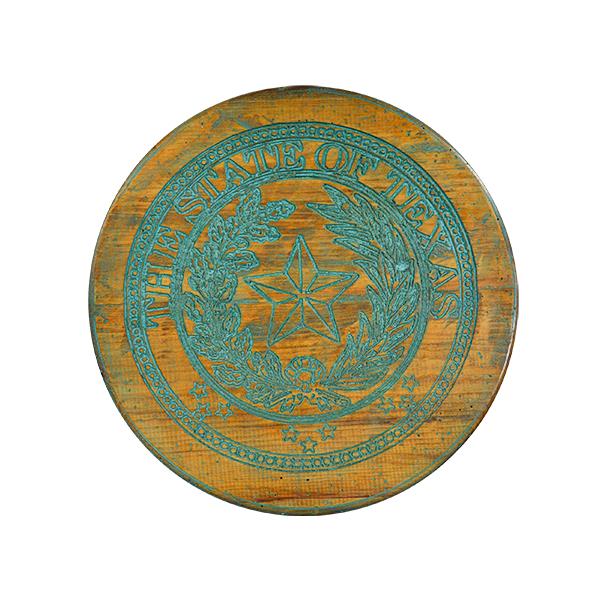 TEXAS STATE SEAL ETCHED IN QUALITY WOOD IN TURQUOISE WASH 16" D X 1.5"