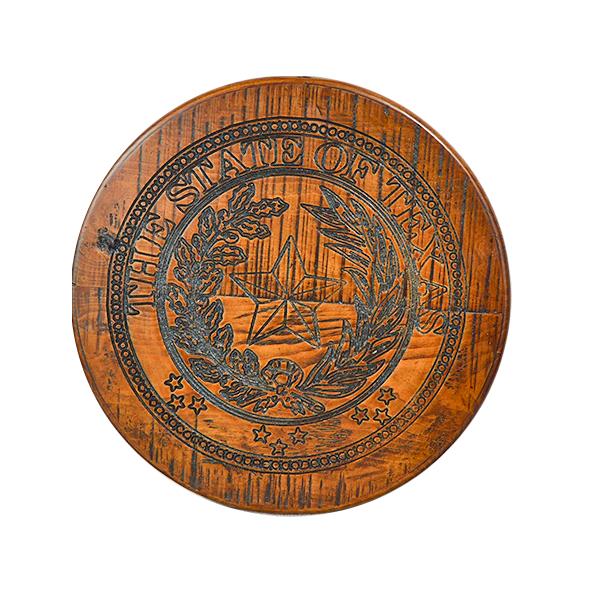 TEXAS STATE SEAL ETCHED IN QUALITY WOOD WITH BLACK WASH 16" D X 1.5"