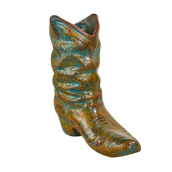 DECORATIVE CLAY COWBOY BOOT - TEAL 16" x 8" x 19"