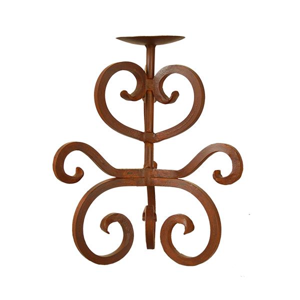 DECORATIVE STEEL CANDLE HOLDER WITH SCROLL AND FLOWER DETAIL