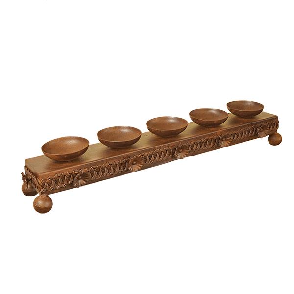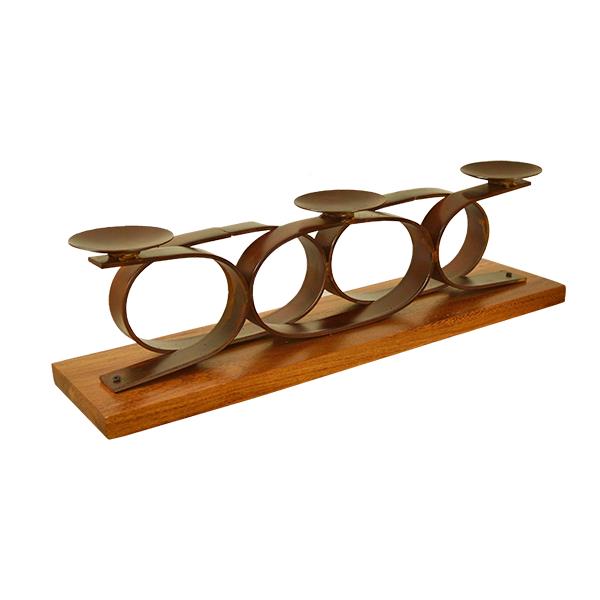 DECORATIVE HAND FORGED STEEL CANDLE HOLDER ON SOLID WOOD BASE 24.5" x 7.5" x 6.5"