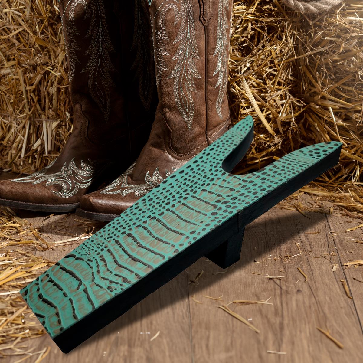 BOOT JACK - EMBOSSED LEATHER CROC TURQUOISE