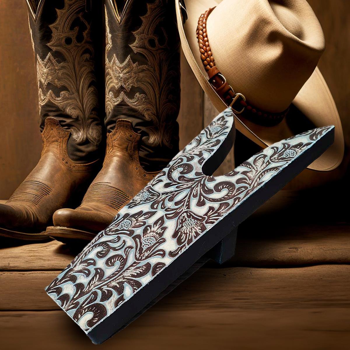 BOOT JACK - EMBOSSED LEATHER FLORAL TAN