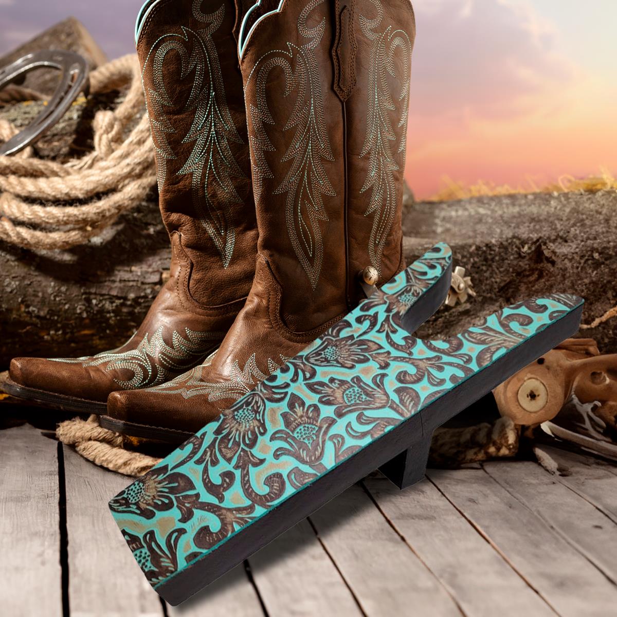 BOOT JACK - EMBOSSED LEATHER FLORAL TURQUOISE