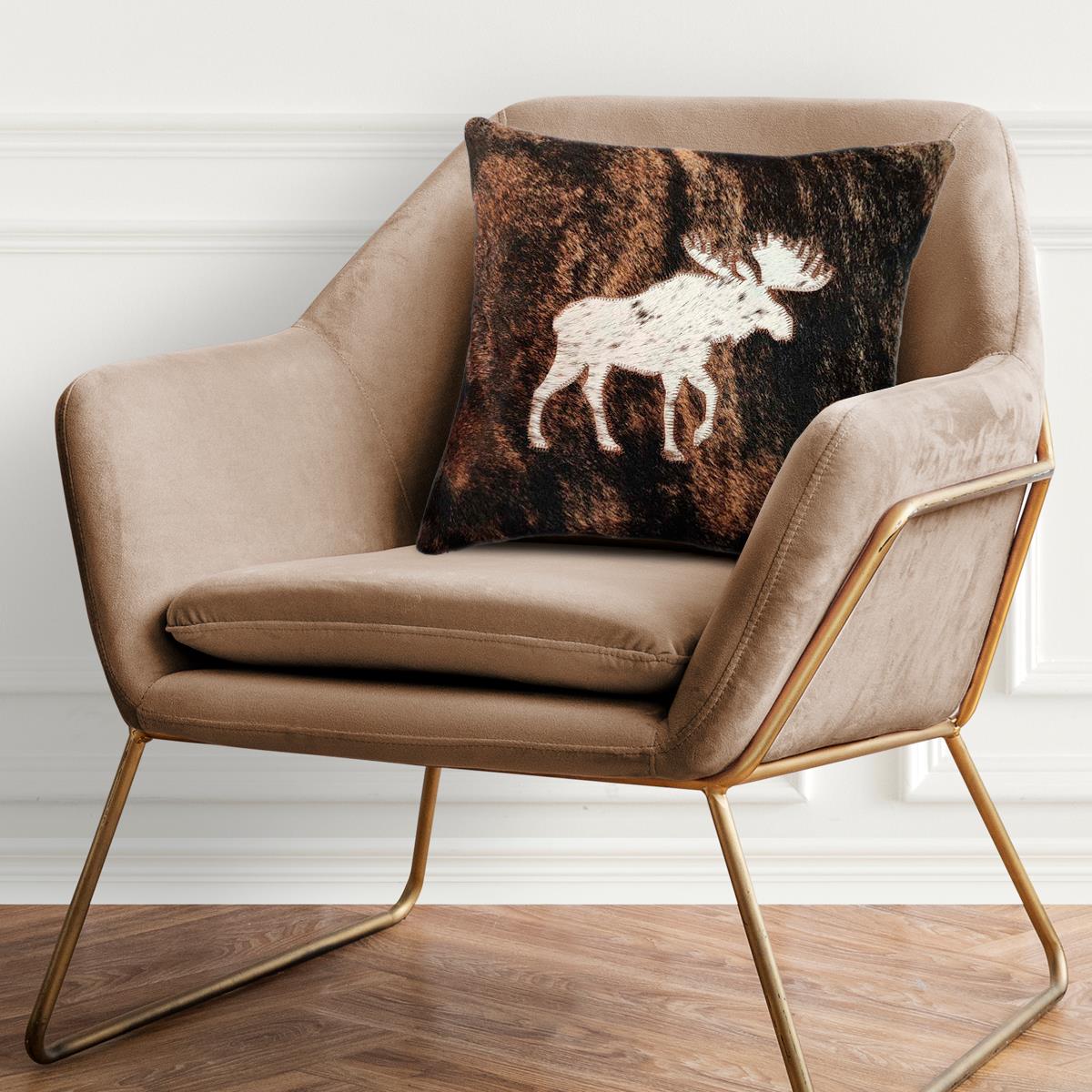CUSHION COVER MADE OF HOH WITH MOOSE, BACK SIDE SUEDE FABRIC - 16" x 16"
