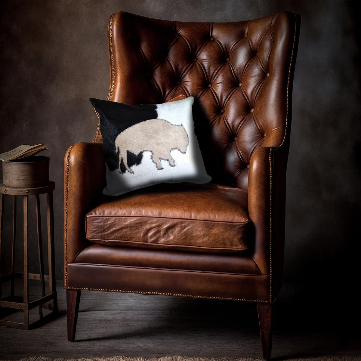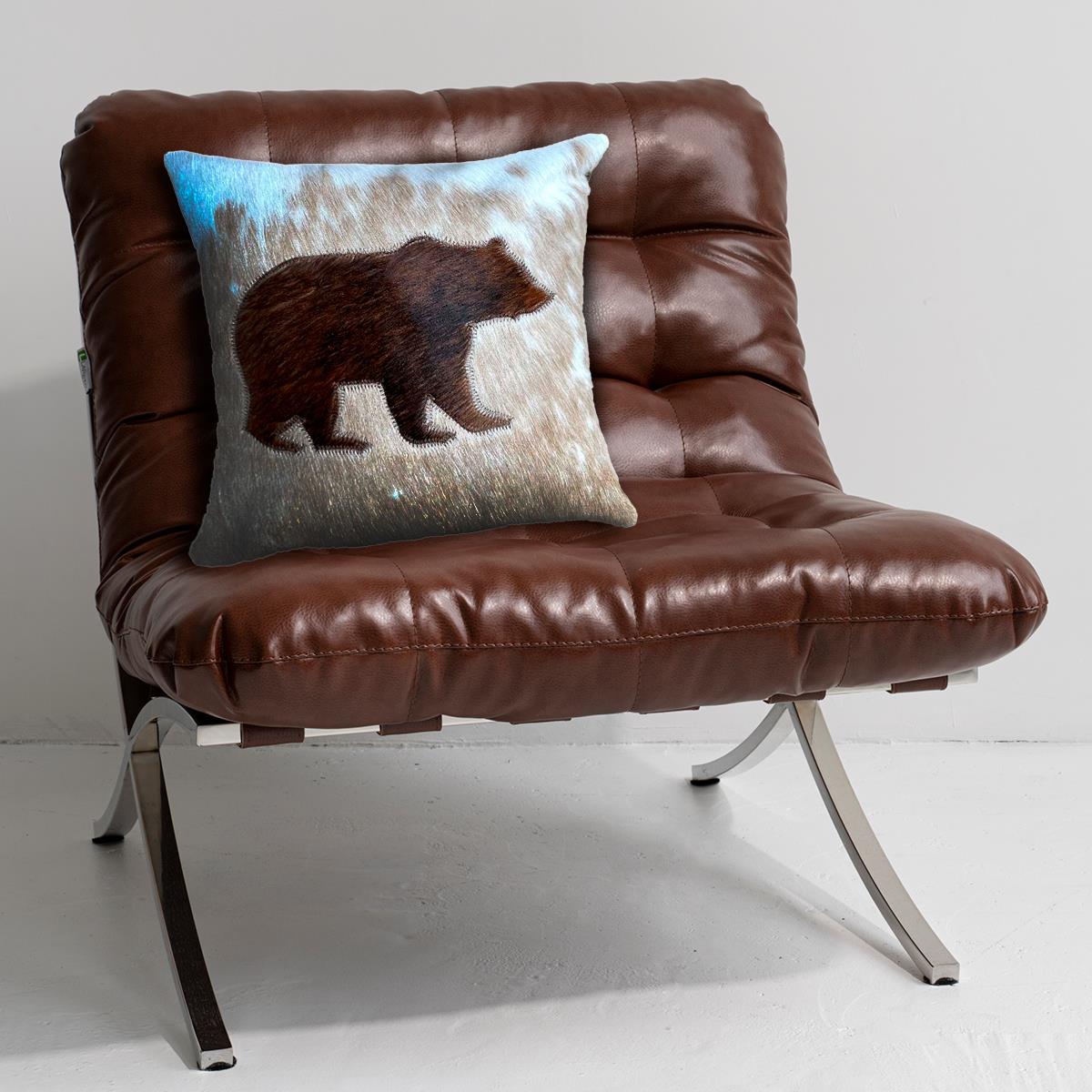 CUSHION COVER MADE OF HOH WITH BISON, BACK SIDE SUEDE FABRIC - 18" x 18"