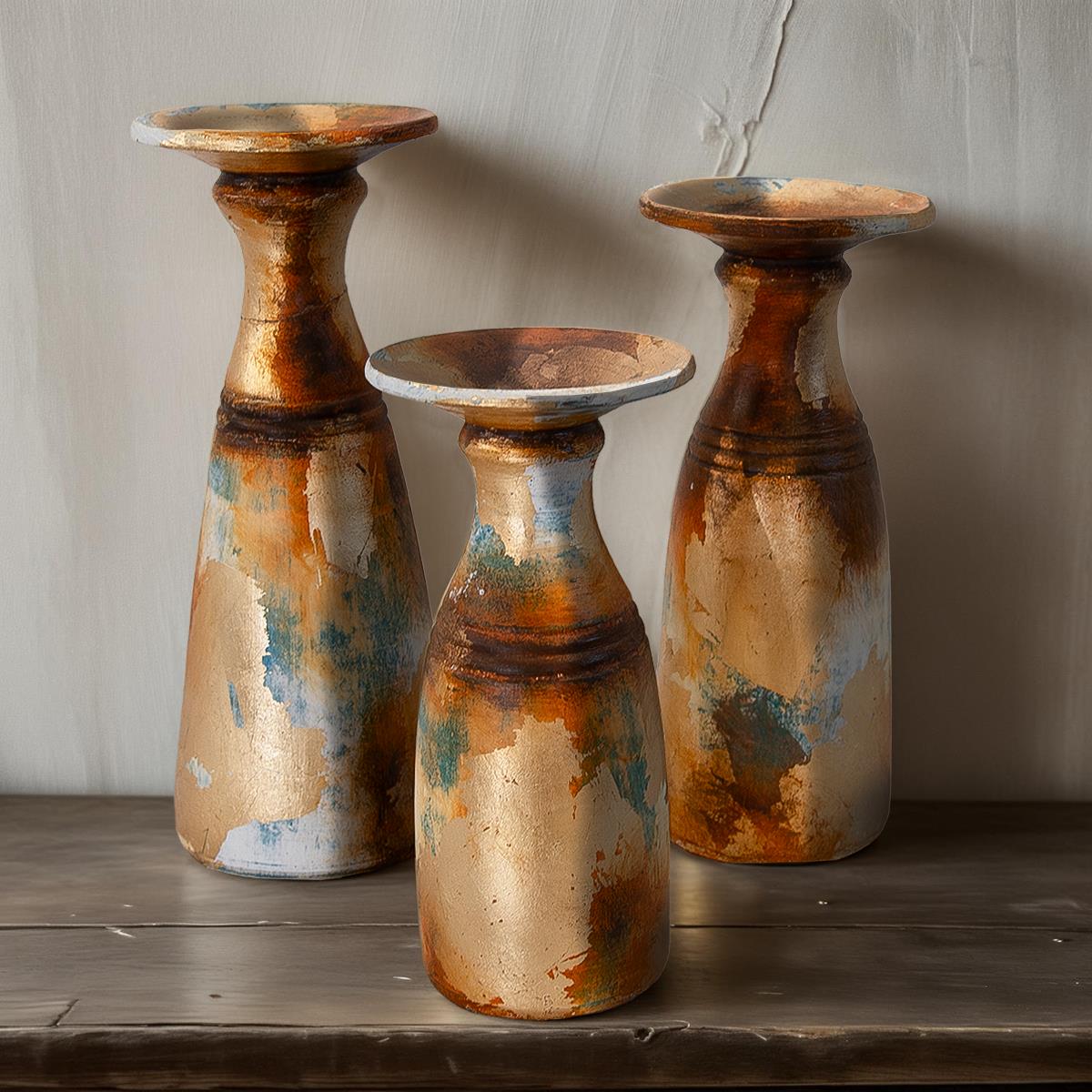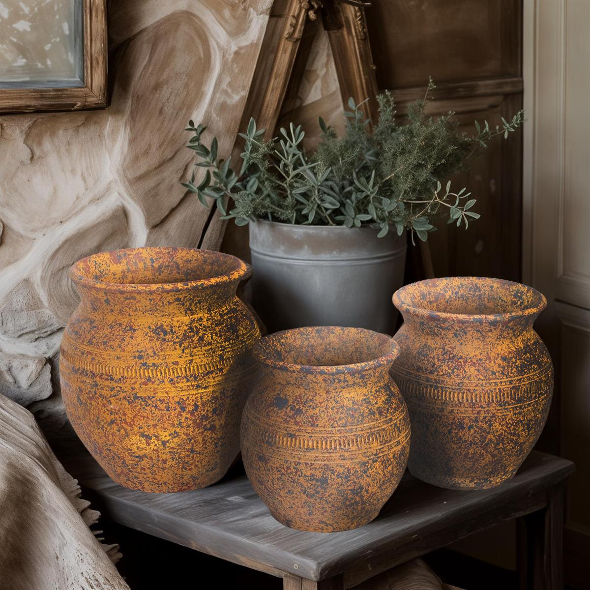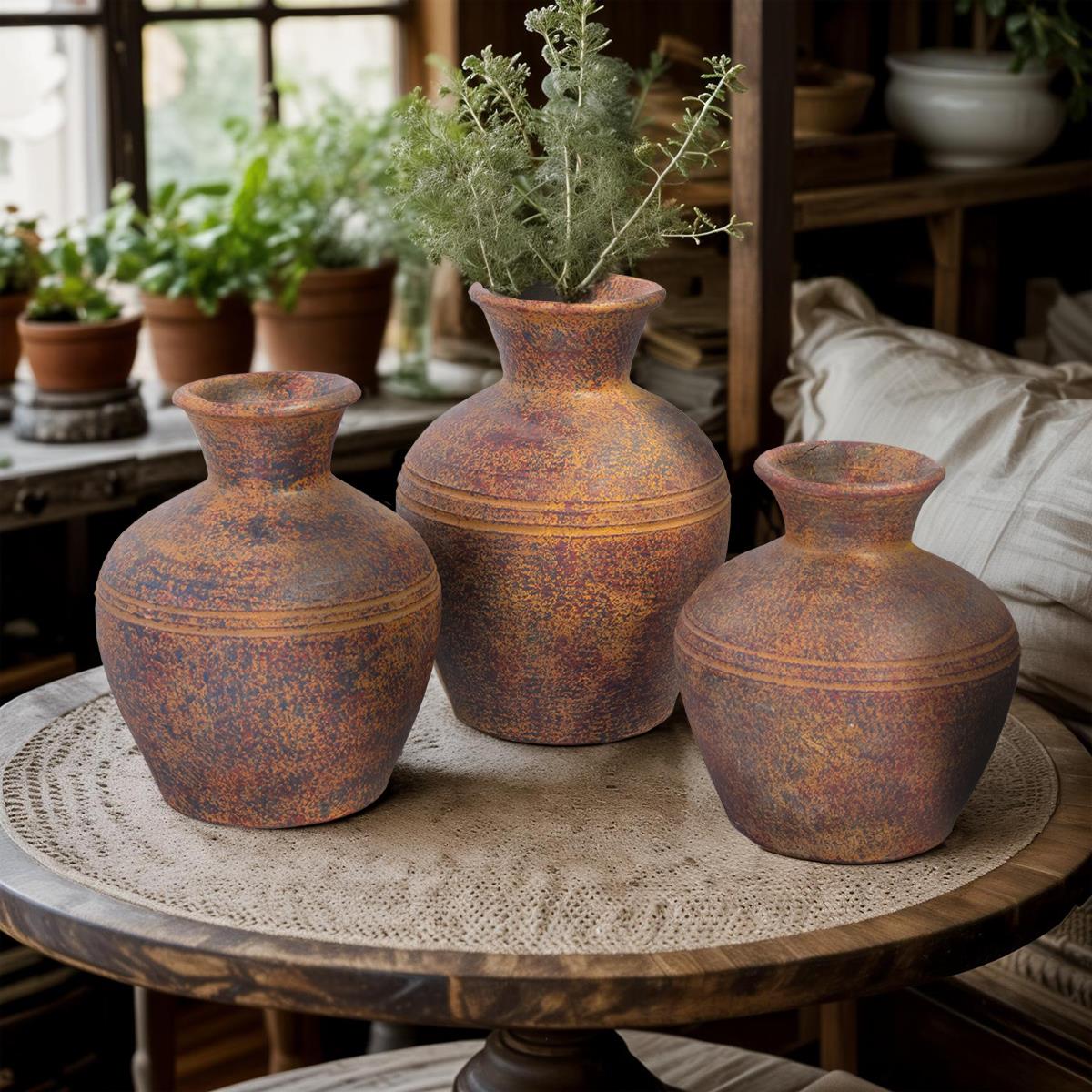 SET OF 3 RUSTIC VASES (3.5x7x8, 4.5x7x9, 4.5x7.5x10.5)