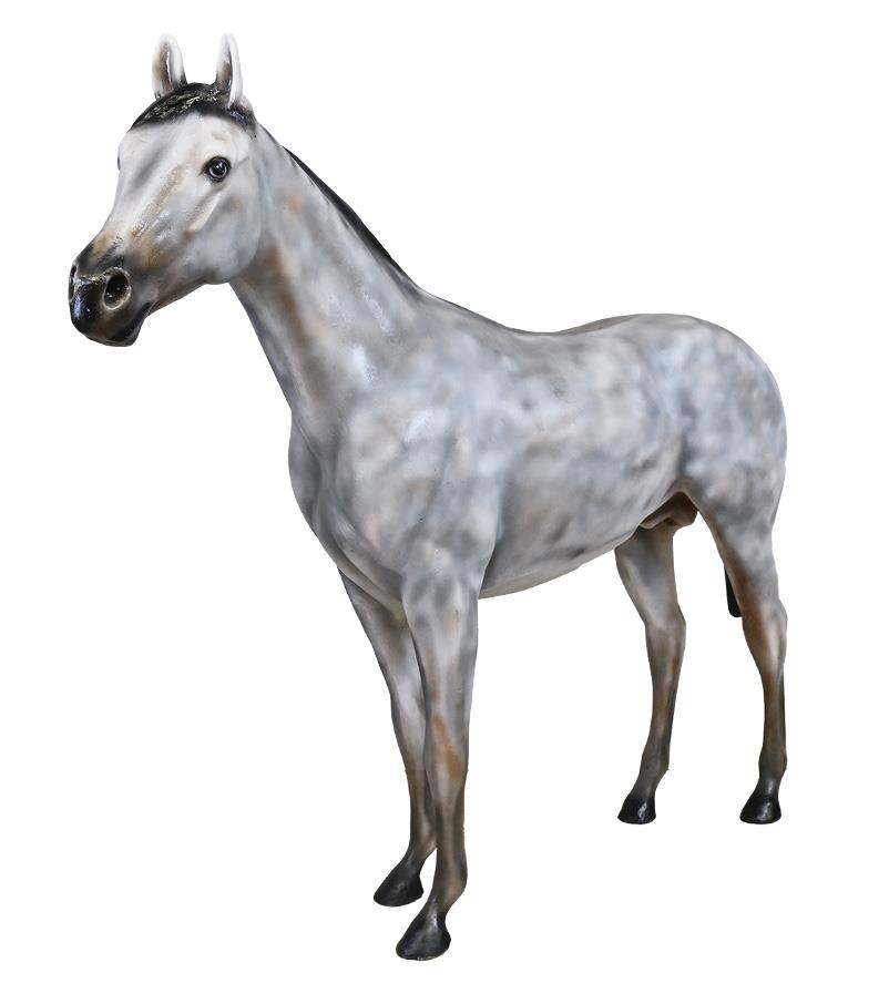 GREY LIFE SIZE FIBERGLASS HORSE 93"W x 19"D x 77"H