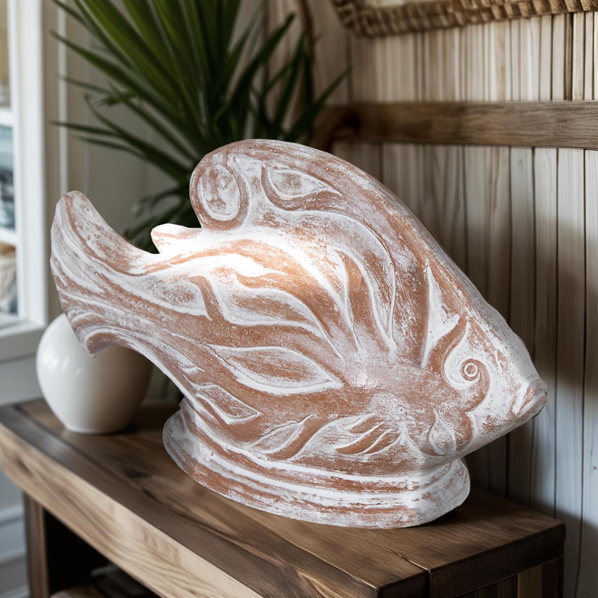 STYLIZED CLAY FISH - WHITE/BEIGE