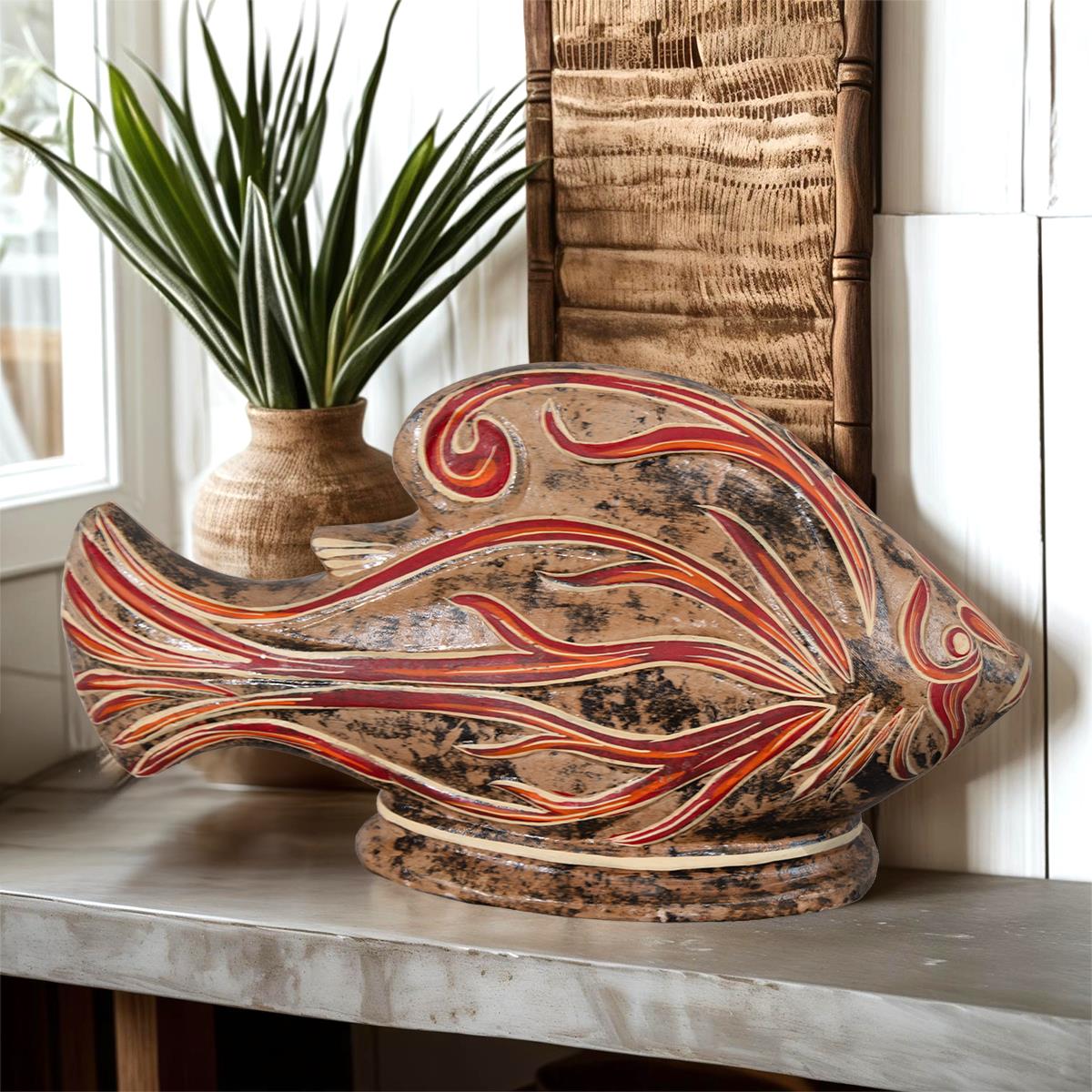 STYLIZED CLAY FISH - BROWN/RED