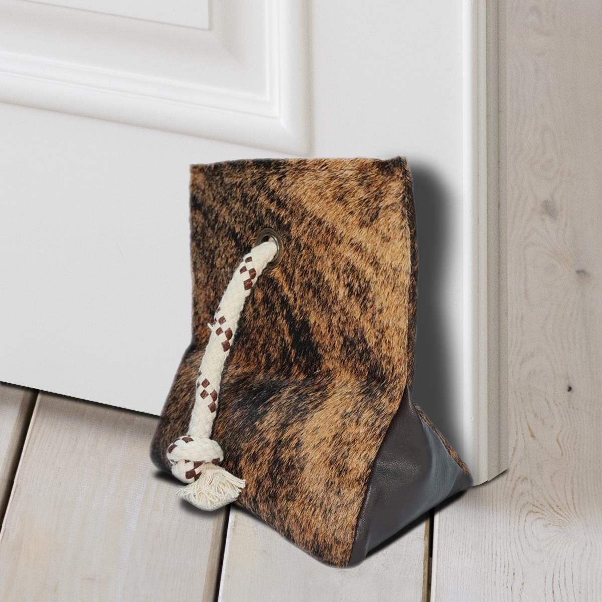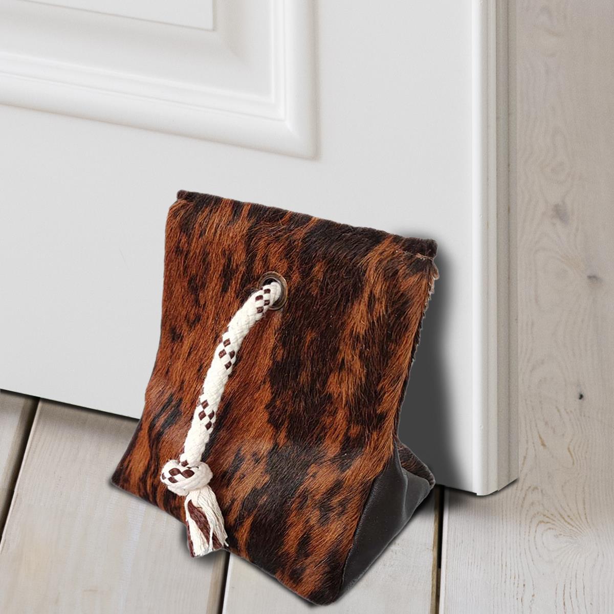 DOOR STOPPER MADE OF COWHIDE (WEIGHTED WITH SAND) - MEDIUM BRINDLE - 8" x 7"