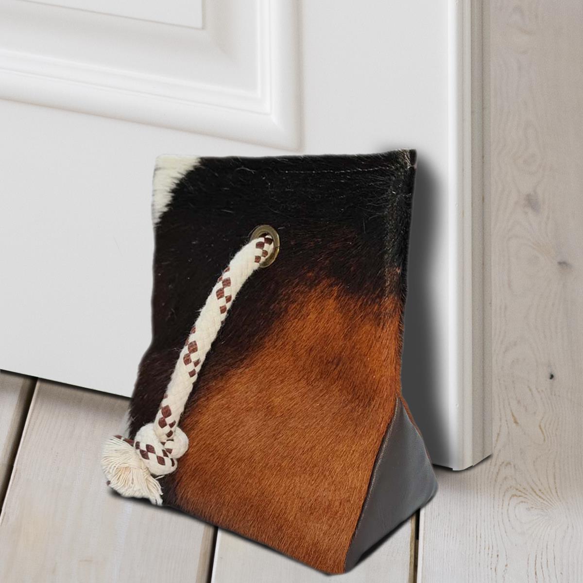 DOOR STOPPER MADE OF COWHIDE (WEIGHTED WITH SAND) - TRICOLOR - 8" x 7"