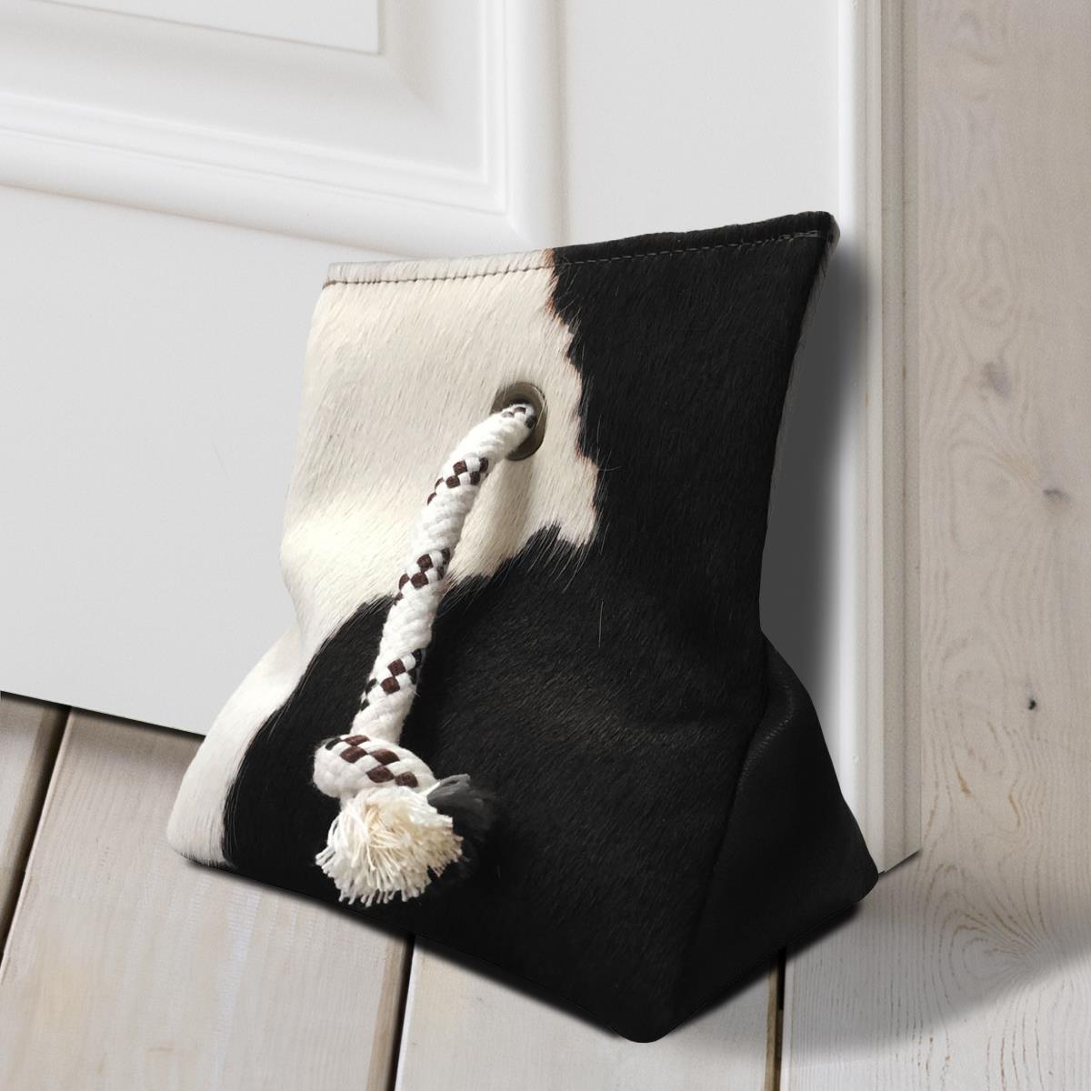 DOOR STOPPER MADE OF COWHIDE (WEIGHTED WITH SAND) - BLACK AND WHITE - 8" x 7"