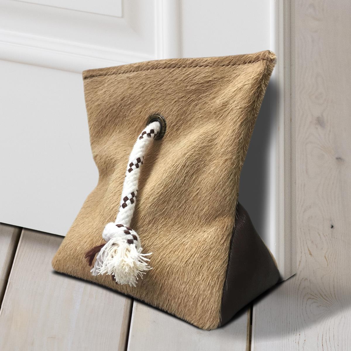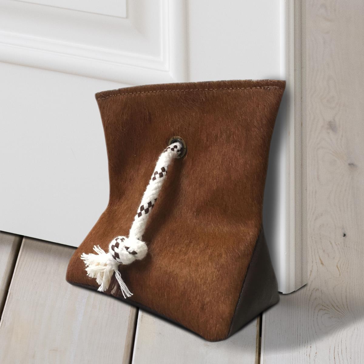 DOOR STOPPER MADE OF COWHIDE (WEIGHTED WITH SAND) - BROWN - 8" x 7"