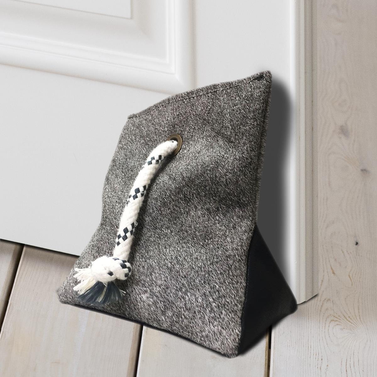 DOOR STOPPER MADE OF COWHIDE (WEIGHTED WITH SAND) - GREY - 8" x 7"