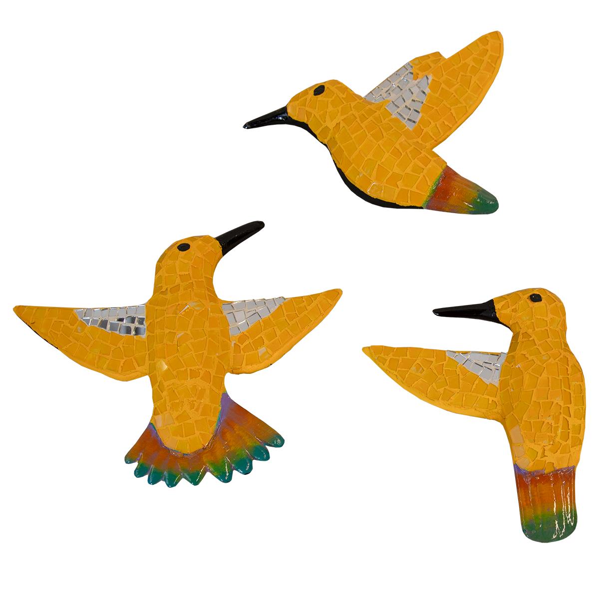 MOSAIC GLASS TILE HUMMINGBIRDS - YELLOW (6x1.5x7.5, 9.5x1.5x8, 7x1.5x9)