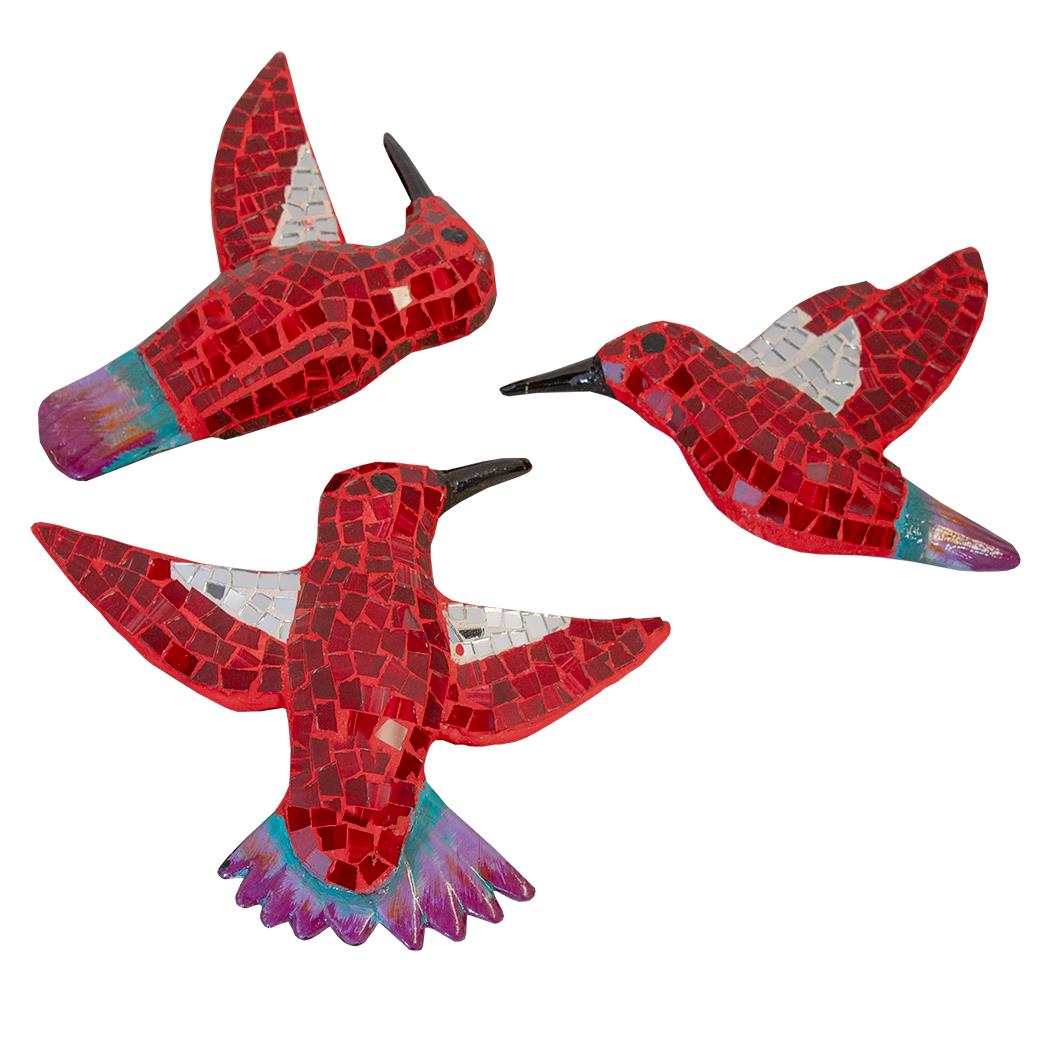 MOSAIC GLASS TILE HUMMINGBIRDS - RED (6x1.5x7.5, 9.5x1.5x8, 7x1.5x9)
