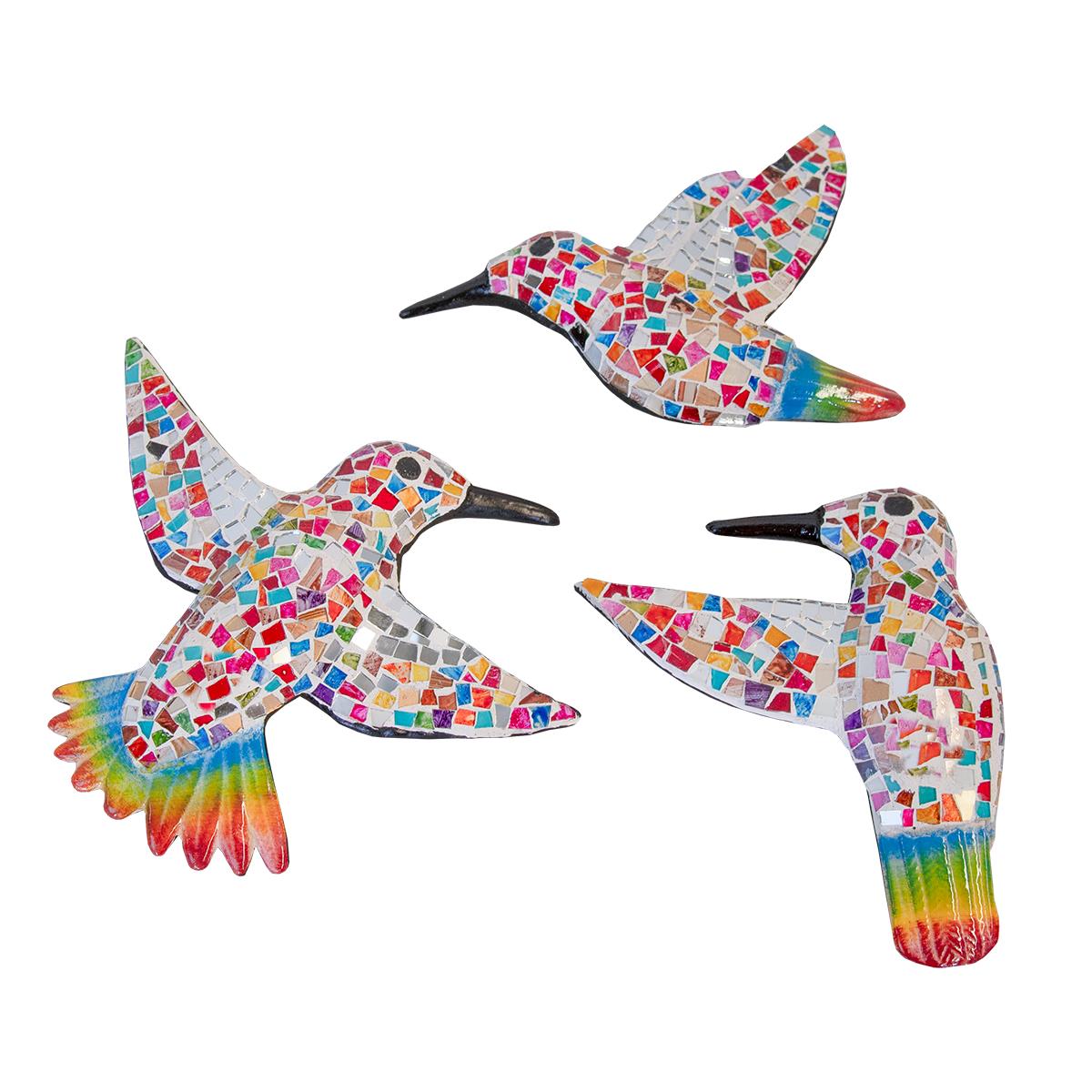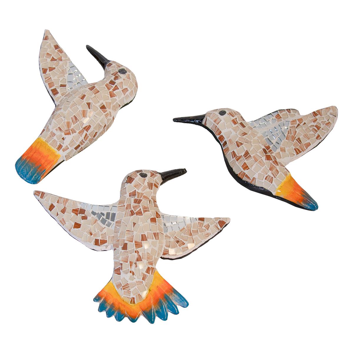 MOSAIC GLASS TILE HUMMINGBIRDS - WHITE MULTICOLOR (6x1.5x7.5, 9.5x1.5x8, 7x1.5x9)