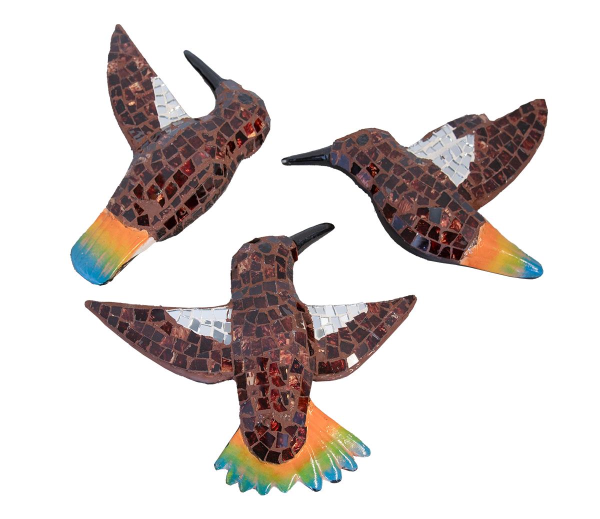 MOSAIC GLASS TILE HUMMINGBIRDS - BROWN (6x1.5x7.5, 9.5x1.5x8, 7x1.5x9)