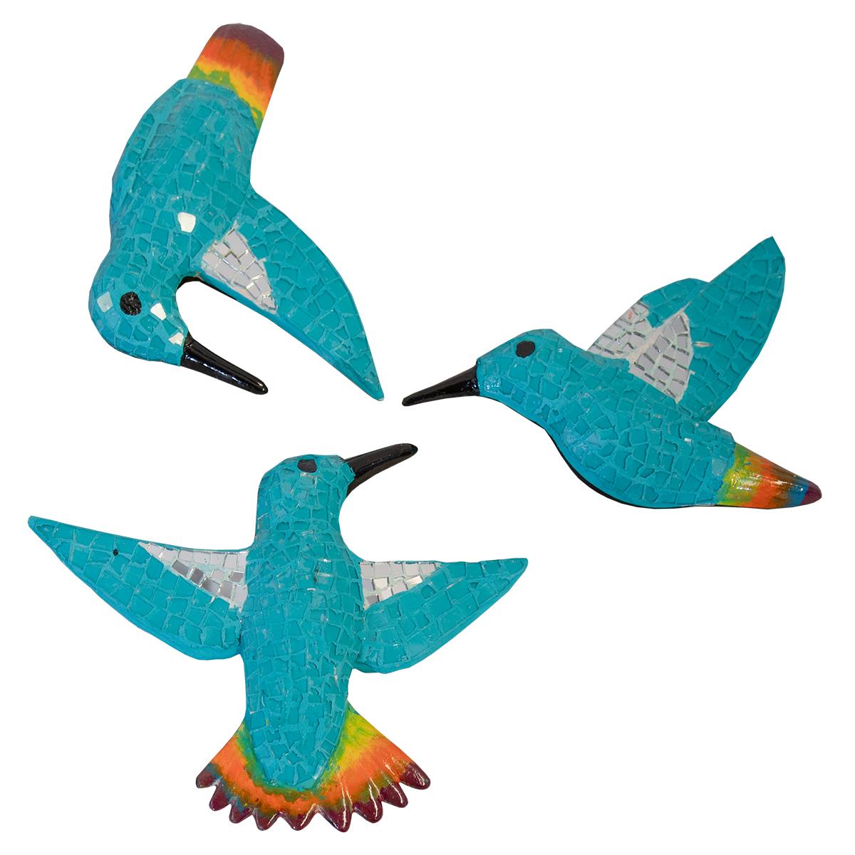 MOSAIC GLASS TILE HUMMINGBIRDS - TURQUOISE (6x1.5x7.5, 9.5x1.5x8, 7x1.5x9)