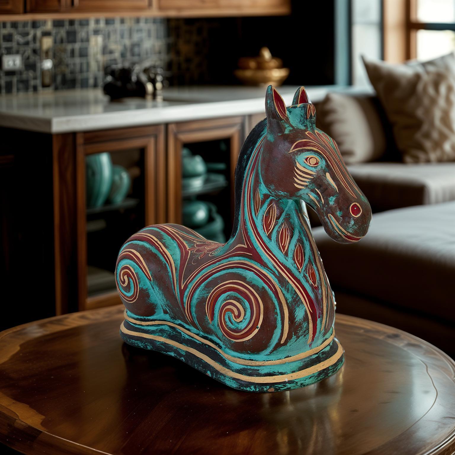 TURQUOISE POTTERY HORSE 22" x 8.5" x 13"
