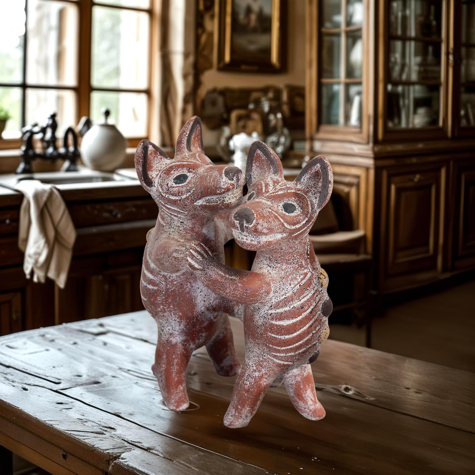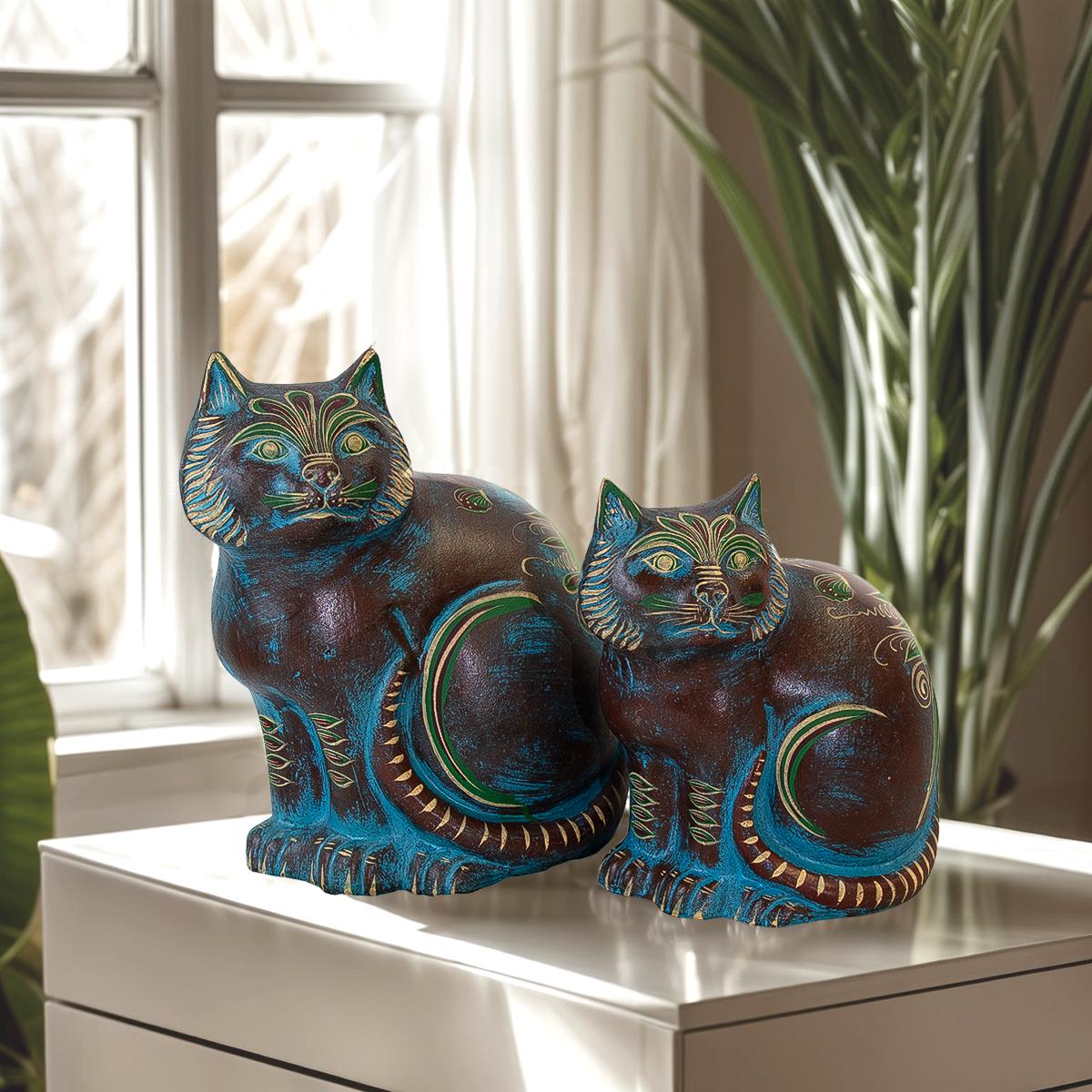 DECORATIVE PAIR OF CLAY CATS (12x9.5x14, 15x11x18.5)