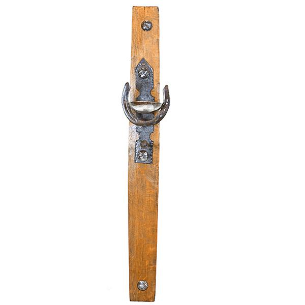 WHISKEY BARREL STAVE - WALL MOUNTED CANDLE HOLDER FEATURES HAND FORGED STEEL AND CLAVOS 9....