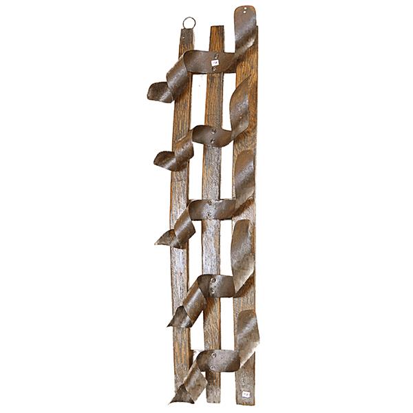 AGED OAK WALL MOUNTED WINE BOTTLE RACK MADE FROM WHISKEY BARREL STAVE 16" x 10" x 35.5"