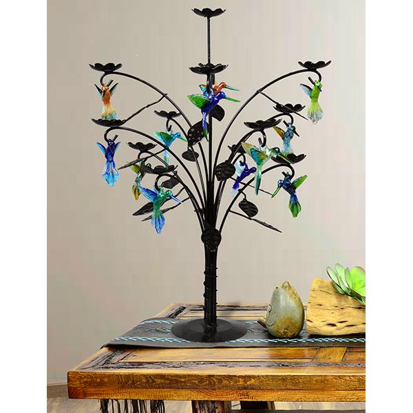 QUALITY HAND BLOWN HUMMINGBIRDS IN A STEEL DISPLAY TREE 27" X 3" X 37"
