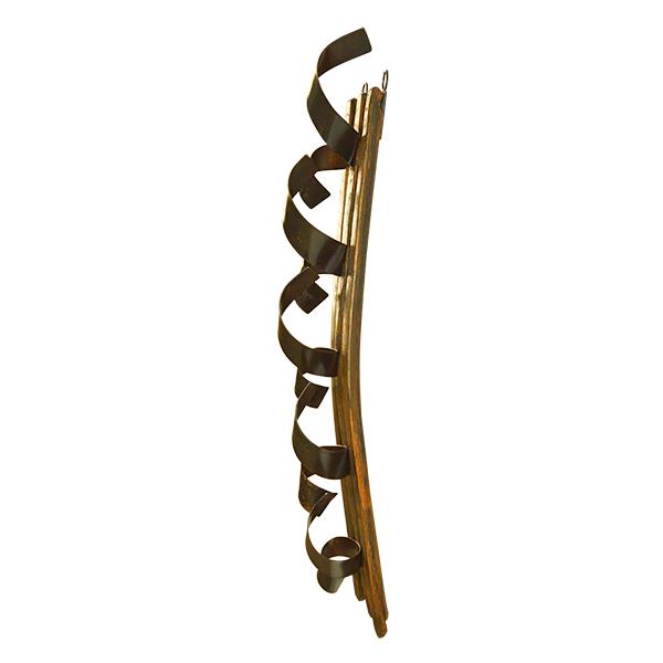 AGED OAK WALL MOUNTED WINE BOTTLE RACK MADE FROM WHISKEY BARREL STAVE 16" x 10" x 35.5"