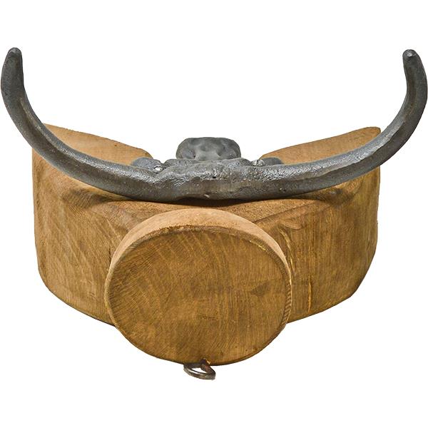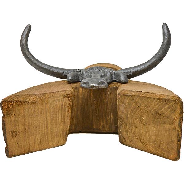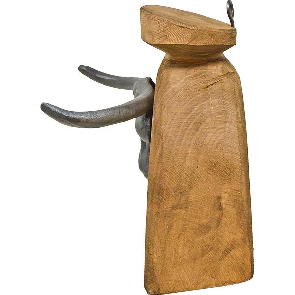 CARVED WOOD YOKE WALL UNIT WITH ADDED CAST IRON LONGHORN HANGER 11.5" X 9" X 11"