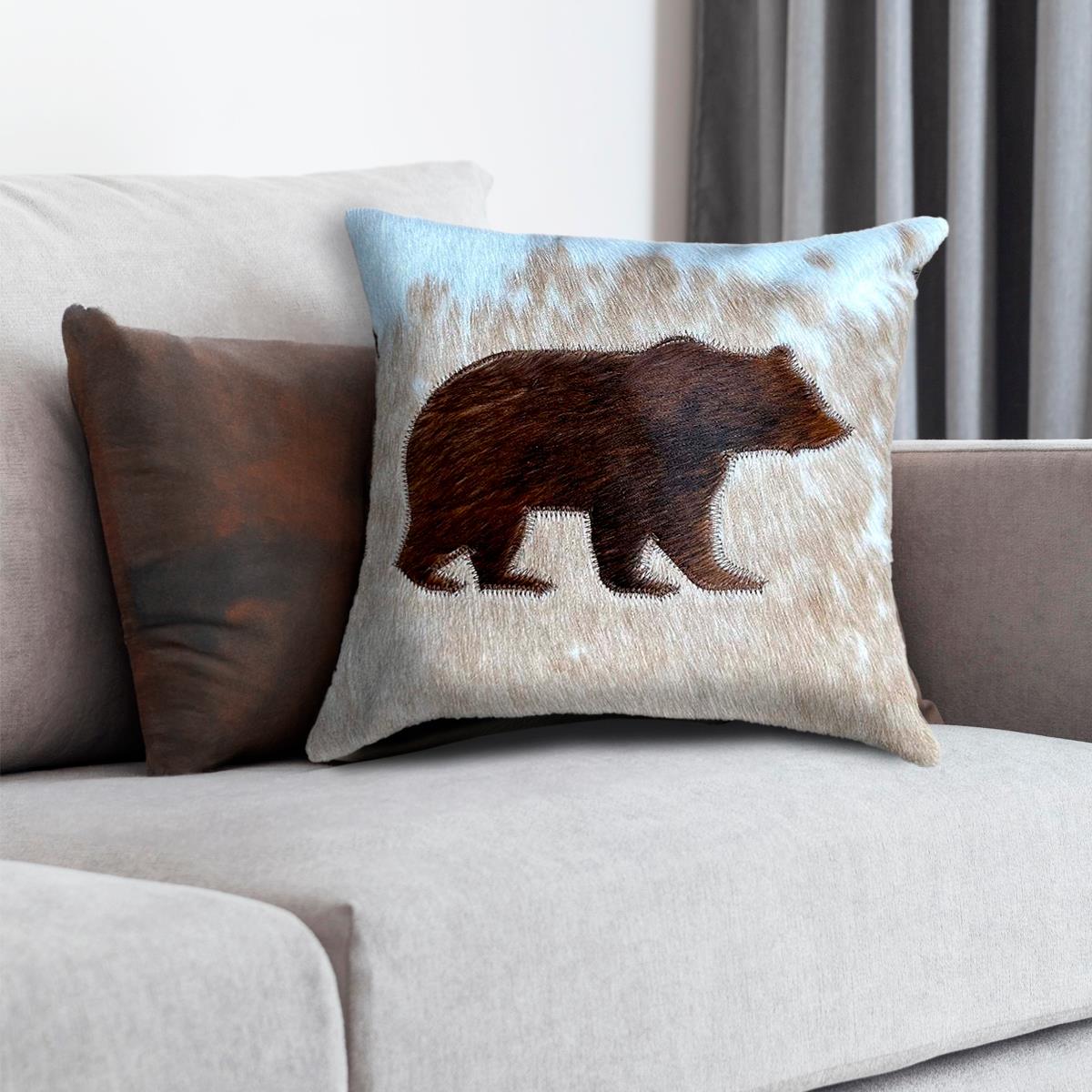 CUSHION COVER MADE OF HOH WITH BLACK BEAR ON WHITE (NO WHITE OR LIGHT BROWN BEARS), BACK SIDE SU...