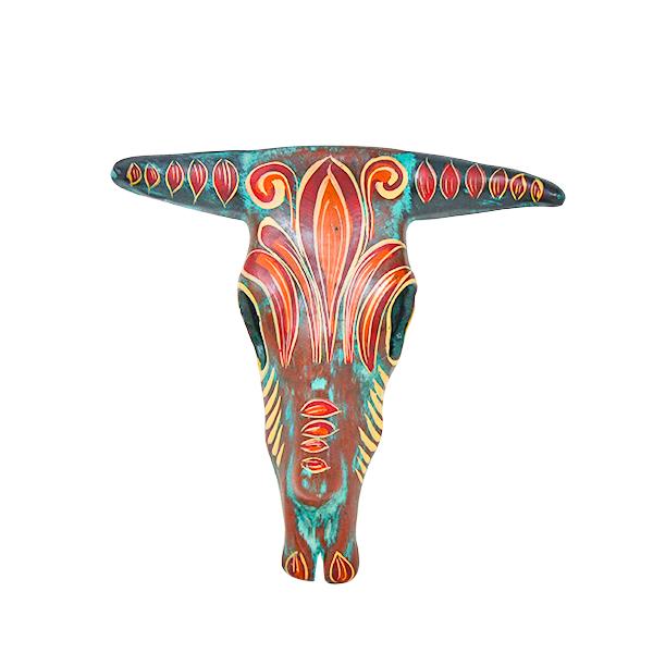 INDIVIDUALLY DESIGNED, HAND PAINTED DÉCOR COW SKULL (WITH WALL MOUNT) 12" x 4" x 12"